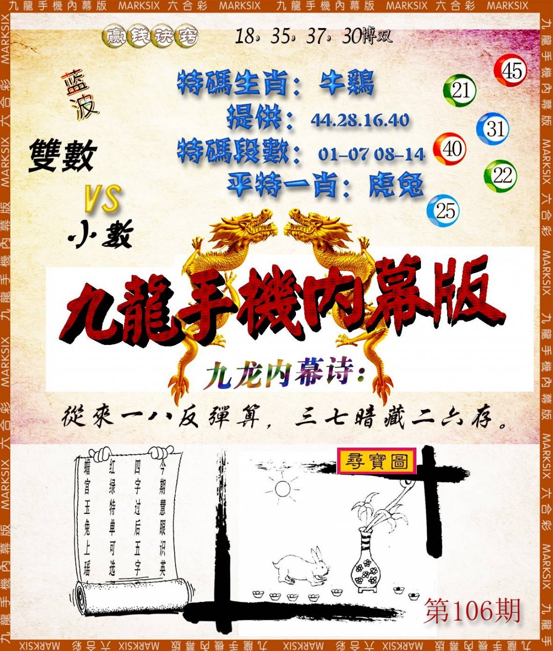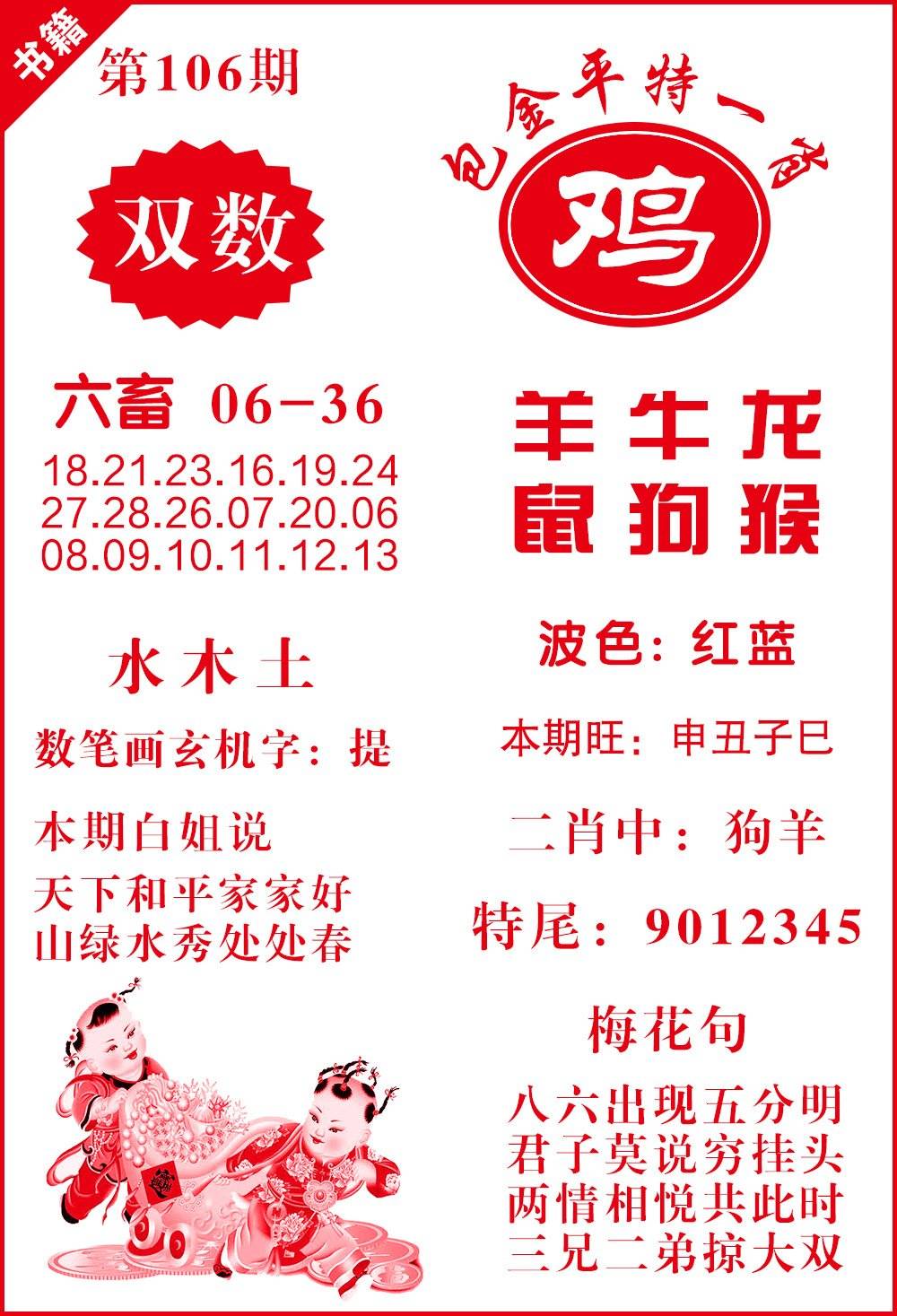 特料帖106期:【平特二肖】