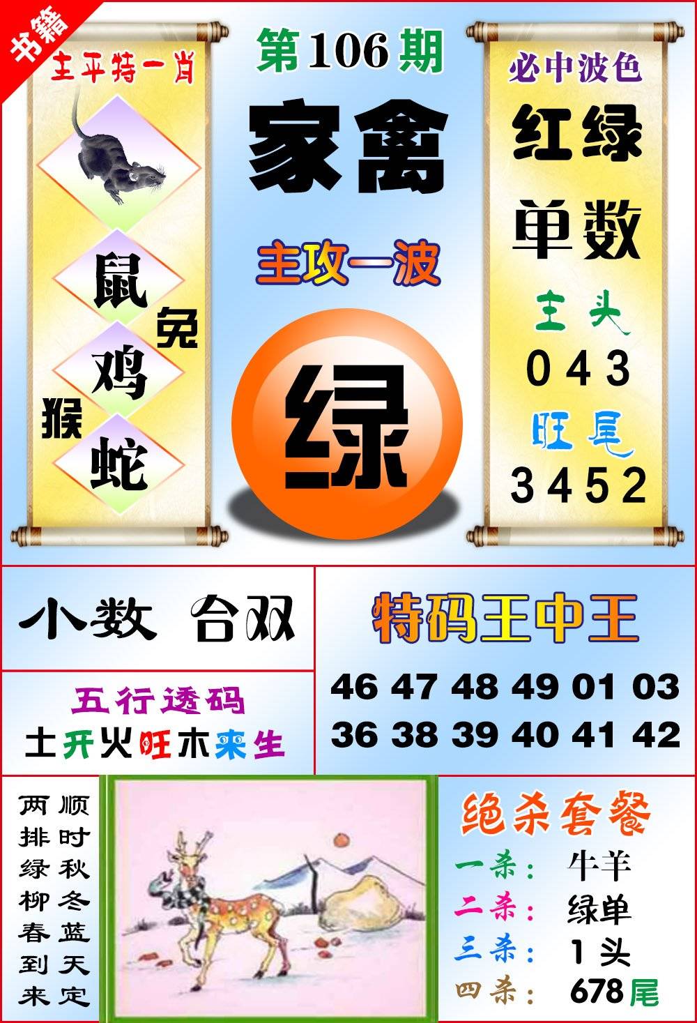 特料帖106期:【发财五肖】